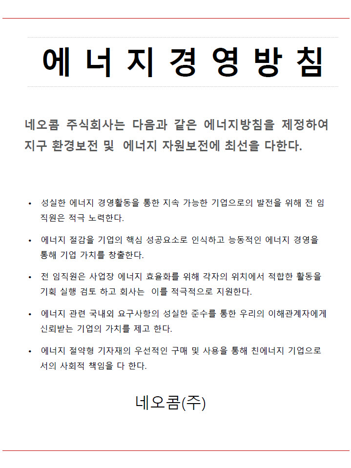 효율적인 에너지 사용과 절감을 통해 친환경·저탄소 경영을 추진합니다.