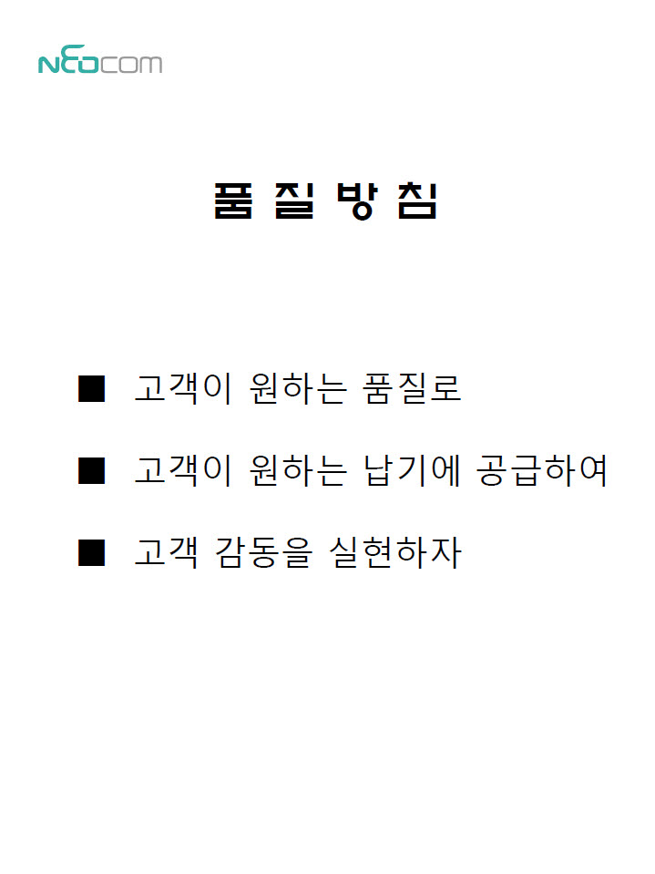 고객만족과 지속적인 품질개선을 통해 신뢰받는 제품과 서비스를 제공합니다.